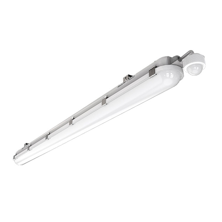 Alternativen för LED Tri-proof belysningsarmatur inkluderar standard 1200 mm, nödsituation 2W3HRS med LiFePo4-batteri, DALI2.0, 1-10V dimning och mikrovågs- eller PIR-sensorer. LED Tri-proof-lampan kommer med 5 års garanti.