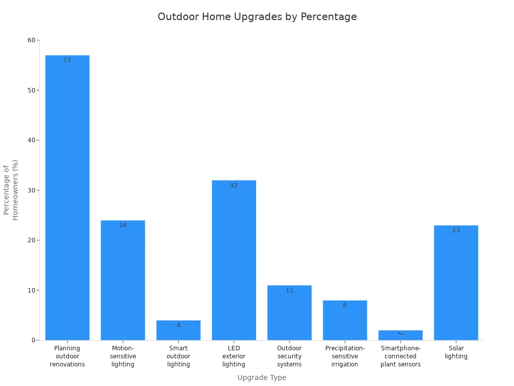 Smart teknik gör det enklare att använda utomhusled-ljus. Du kan styra dina lampor med din telefon eller röst. Många system låter dig ställa in tider för lampor att tända och släcka. Detta hjälper till att spara energi och håller ditt hem säkrare. Du kan också ändra hur ljusa eller färgglada lamporna är.